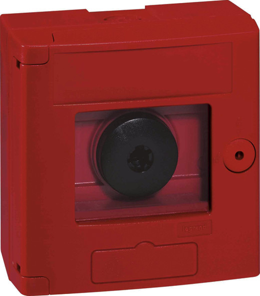 Legrand Sicherheitskasten IP 44 - IK07, mit Taster, Schaltkontakt: 1 Öffner/1 Schließer, Hammer mit Kette nicht im Lieferumfang, optional bestellbar (Best.-Nr. (Best.-Nr. 038091), Abmessung (HxBxT): 125 x 125 x 71, Farbe: Feuerrot RAL 3000, Schutzklasse II, zwei ausbrechbare Leitungeinführungen mit Durchmesser 20 mm auf der Rückseite. Sicherheitskasten für Aufputzmontage.