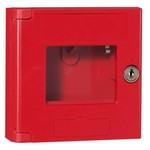 Legrand Schlüsselkasten IP 44 - IK07, leer, mit Signalkontakt 4-48 VDC/100 mA zur Meldung z.B. "Kasten geöffnet". Hammer mit Kette nicht im Lieferumfang, optional bestellbar (Best.-Nr. 001391), Abmessung (HxBxT): 125 x 125 x 45, Farbe: Rot, Schutzklasse II, drei Vorprägungen PG 7/ M 12 für Leitungeinführung. Schlüsselkasten für Aufputzmontage.