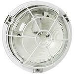 Feuchtraumleuchte für 100 W Glühlampen, weiß, E 27 Fassung, IP 55 - IK 05 mit Schutzgitter Best.Nr. 605 09 (optional), Schutzklasse I, Unterteil aus Metall, Abdeckung aus Glas
