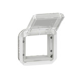 Plexo New Einsatz Mosaic Adapter mit transparentem Klappdeckel in der Farbe: Ultraweiß. Einsätze müssen in einem Tragring (Unterputzrahmen ) oder einem Aufputzgehäuse installiert werden.
