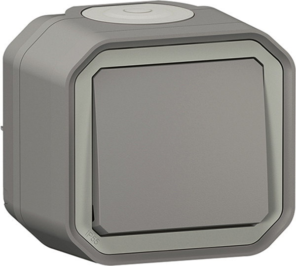 Plexo New Feuchtraum-Aufputz 2-poliger Schalter Kontroll 10 AX, Steckklemmen (SL), IP 55, IK 08, in der Farbe: Grau