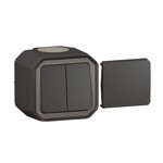 Plexo New Feuchtraum-Aufputz Multifunktionsschalter wahlweise Doppelwechselschalter/ Taster oder Wechselschalter/ Taster oder Wechselschalter 10 AX mit Taster 10 A, Steckklemmen (SL), IP 55, IK 08, in der Farbe: Anthrazit