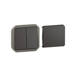 Plexo New Einsatz Multifunktionsschalter wahlweise Doppelwechselschalter/ Taster oder Wechselschalter/ Taster oder Wechselschalter 10 AX mit Taster 10 A, Steckklemmen (SL), IP 55, IK 08, in der Farbe: anthrazit. Einsätze müssen in einem Tragring (Unterputzrahmen ) oder einem Aufputzgehäuse installiert werden.