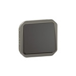 Plexo New Einsatz Taster Wechselkontakt 10 A, Steckklemmen (SL), IP 55, IK 08, in der Farbe: Anthrazit. Einsätze müssen in einem Tragring (Unterputzrahmen ) oder einem Aufputzgehäuse installiert werden.