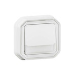 Plexo New Feuchtraum-Unterputz Taster mit Wechselkontakt beleuchtet mit Beschriftungsfeld 10 A, Steckklemmen (SL), IP 55, IK 08, in der Farbe: Ultraweiß