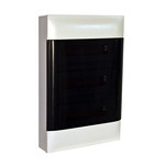 Legrand Aufputzverteiler Practibox S, mit Rauchglas-Kunststofftür, Gehäuse Signalweiß RAL 9003, Schutzart IP30 - IK07, 3-reihig, 12 Module/Reihe, Abmessung 535 x 328 x 103 (Höhe x Breite x Tiefe in mm), selbsverlöschend 650 °C, Komplettset inkl. Mauerkasten und Tür, inklusive N- und PE-Klemmen, Schutzklasse II. Türen rechst und links anschlagbar. Nach IEC 60670-24. Geeignet für Aufputzmontage.