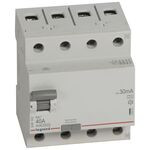 Legrand Fehlerstromschutzschalter RX3, Typ A, für Wechsel- und pulsierende Gleichfehlerströme nach VDE 0664-10, EN 61008-1, unverzögert, 4-polig, Bemessungsstrom In 40 A, Bemessungsfehlerstrom Idn 30 mA, Bemessungsspannung Un 400 VAC, Bemessungsfrequenz 50 Hz, Stoßstromfest bis 250 A, Bemessungskurzschlussstrom 10 kA bei geeigneter Vorsicherung, Befestigung auf Hutprofilschiene EN 60715 durch rastende Schnellbefestigungen, Kennzeichnung Schaltstellungsanzeige On/Off, mit Beschriftungsfeld, Anbau von Hilfsgeräten nicht möglich.