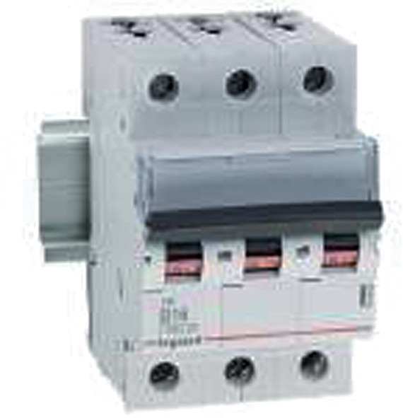 Legrand Leitungsschutzschalter TX3 nach EN 60898-1, VDE 0641-11, EN 60947-2, 3-polig, C-Charakteristik, Bemessungsstrom In 20 A, Bemessungsschaltvermögen Icn 6 kA nach EN 60898-1, Bemessungsspannung Un 400 VAC, Bemessungsfrequenz 50/60 Hz, Energiebegrenzungsklasse 3, Befestigung auf Hutprofilschiene EN 60715 durch eine rastende Schnellbefestigung, klare Information vorne auf jedem Gerät, eindeutige Schaltstellungsanzeige rot/grün am Schalthebel, mit Beschriftungsfenster, mit Untersteckschutz zum sicheren Einführen des Leiters in Fahrstuhlklemme, Anbau von Hilfsgeräten möglich. Leitungsschutzschalter mit C-Charakteristik sind für den Leitungsschutz bei Geräten mit hohen Einschaltströmen (z.B. Motoren und Transformatoren) vorgesehen.
