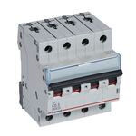 Legrand Leitungsschutzschalter TX3 nach EN 60898-1, VDE 0641-11, EN 60947-2, 4-polig, C-Charakteristik, Bemessungsstrom In 0,3 A, Bemessungsschaltvermögen Icn 6 kA nach EN 60898-1, Bemessungsspannung Un 400 VAC, Bemessungsfrequenz 50/60 Hz, Energiebegrenzungsklasse 3, Befestigung auf Hutprofilschiene EN 60715 durch eine rastende Schnellbefestigung, klare Information vorne auf jedem Gerät, eindeutige Schaltstellungsanzeige rot/grün am Schalthebel, mit Beschriftungsfenster, mit Untersteckschutz zum sicheren Einführen des Leiters in Fahrstuhlklemme, Anbau von Hilfsgeräten möglich. Leitungsschutzschalter mit C-Charakteristik sind für den Leitungsschutz bei Geräten mit hohen Einschaltströmen (z.B. Motoren und Transformatoren) vorgesehen.