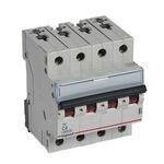 Legrand Leitungsschutzschalter TX3 nach EN 60898-1, VDE 0641-11, EN 60947-2, 4-polig, C-Charakteristik, Bemessungsstrom In 4 A, Bemessungsschaltvermögen Icn 6 kA nach EN 60898-1, Bemessungsspannung Un 400 VAC, Bemessungsfrequenz 50/60 Hz, Energiebegrenzungsklasse 3, Befestigung auf Hutprofilschiene EN 60715 durch eine rastende Schnellbefestigung, klare Information vorne auf jedem Gerät, eindeutige Schaltstellungsanzeige rot/grün am Schalthebel, mit Beschriftungsfenster, mit Untersteckschutz zum sicheren Einführen des Leiters in Fahrstuhlklemme, Anbau von Hilfsgeräten möglich. Leitungsschutzschalter mit C-Charakteristik sind für den Leitungsschutz bei Geräten mit hohen Einschaltströmen (z.B. Motoren und Transformatoren) vorgesehen.