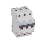 Legrand Leitungsschutzschalter TX3 nach EN 60898-1, VDE 0641-11, EN 60947-2, 3-polig, B-Charakteristik, Bemessungsstrom In 3 A, Bemessungsschaltvermögen Icn 10 kA nach EN 60898-1, Bemessungsspannung Un 400 VAC, Bemessungsfrequenz 50/60 Hz, Energiebegrenzungsklasse 3, Befestigung auf Hutprofilschiene EN 60715 durch eine rastende Schnellbefestigung, klare Information vorne auf jedem Gerät, eindeutige Schaltstellungsanzeige rot/grün am Schalthebel, mit Beschriftungsfenster, mit Untersteckschutz zum sicheren Einführen des Leiters in Fahrstuhlklemme, Anbau von Hilfsgeräten möglich. Leitungsschutzschalter mit B-Charakteristik sind vornehmlich für den Leitungsschutz in Licht- und Steckdosen-Stromkreisen bestimmt.