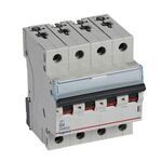 Legrand Leitungsschutzschalter TX3 nach EN 60898-1, VDE 0641-11, EN 60947-2, 4-polig, B-Charakteristik, Bemessungsstrom In 4 A, Bemessungsschaltvermögen Icn 10 kA nach EN 60898-1, Bemessungsspannung Un 400 VAC, Bemessungsfrequenz 50/60 Hz, Energiebegrenzungsklasse 3, Befestigung auf Hutprofilschiene EN 60715 durch eine rastende Schnellbefestigung, klare Information vorne auf jedem Gerät, eindeutige Schaltstellungsanzeige rot/grün am Schalthebel, mit Beschriftungsfenster, mit Untersteckschutz zum sicheren Einführen des Leiters in Fahrstuhlklemme, Anbau von Hilfsgeräten möglich. Leitungsschutzschalter mit B-Charakteristik sind vornehmlich für den Leitungsschutz in Licht- und Steckdosen-Stromkreisen bestimmt.