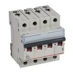 Legrand Leitungsschutzschalter TX3 nach EN 60898-1, VDE 0641-11, EN 60947-2, 4-polig, B-Charakteristik, Bemessungsstrom In 63 A, Bemessungsschaltvermögen Icn 10 kA nach EN 60898-1, Bemessungsspannung Un 400 VAC, Bemessungsfrequenz 50/60 Hz, Energiebegrenzungsklasse 3, Befestigung auf Hutprofilschiene EN 60715 durch eine rastende Schnellbefestigung, klare Information vorne auf jedem Gerät, eindeutige Schaltstellungsanzeige rot/grün am Schalthebel, mit Beschriftungsfenster, mit Untersteckschutz zum sicheren Einführen des Leiters in Fahrstuhlklemme, Anbau von Hilfsgeräten möglich. Leitungsschutzschalter mit B-Charakteristik sind vornehmlich für den Leitungsschutz in Licht- und Steckdosen-Stromkreisen bestimmt.