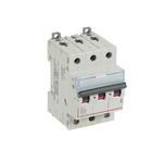 Legrand Leitungsschutzschalter DX3 nach EN 60947-2, 3-polig, D-Charakteristik, Bemessungsstrom In 25 A, Bemessungsschaltvermögen 10 kA nach EN 60898-1, Bemessungsspannung Un 400 VAC, Bemessungsfrequenz 50/60 Hz, Befestigung auf Hutprofilschiene EN 60715 durch zwei rastende Schnellbefestigungen, klare Information vorne auf jedem Gerät, eindeutige Schaltstellungsanzeige rot/grün, mit Beschriftungsfenster, mit Untersteckschutz zum sicheren Einführen des Leiters in Fahrstuhlklemme, Anbau von Hilfsgeräten möglich. Leitungsschutzschalter mit D-Charakteristik sind für den Leitungsschutz in Kraftstromkreisen mit sehr hohen Einschaltströmen vorzusehen (z.B. Schweißtrafos).