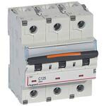 Legrand Leitungsschutzschalter DX3 nach EN 60947-2, 3-polig, C-Charakteristik, Bemessungsstrom In 125 A, Bemessungsschaltvermögen 25 kA nach EN 60947-2, Bemessungsspannung Un 400 VAC, Bemessungsfrequenz 50/60 Hz, Befestigung auf Hutprofilschiene EN 60715 durch zwei rastende Schnellbefestigungen, klare Information vorne auf jedem Gerät, eindeutige Schaltstellungsanzeige rot/grün, mit Beschriftungsfenster, mit Untersteckschutz zum sicheren Einführen des Leiters in Fahrstuhlklemme, Anbau von Hilfsgeräten möglich. Leitungsschutzschalter mit C-Charakteristik sind für den Leitungsschutz bei Geräten mit hohen Einschaltströmen (z.B. Motoren und Transformatoren) vorgesehen.