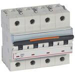 Legrand Leitungsschutzschalter DX3 nach EN 60947-2, 4-polig, D-Charakteristik, Bemessungsstrom In 63 A, Bemessungsschaltvermögen 25 kA nach EN 60947-2, Bemessungsspannung Un 400 VAC, Bemessungsfrequenz 50/60 Hz, Befestigung auf Hutprofilschiene EN 60715 durch zwei rastende Schnellbefestigungen, klare Information vorne auf jedem Gerät, eindeutige Schaltstellungsanzeige rot/grün, mit Beschriftungsfenster, mit Untersteckschutz zum sicheren Einführen des Leiters in Fahrstuhlklemme, Anbau von Hilfsgeräten möglich. Leitungsschutzschalter mit D-Charakteristik sind für den Leitungsschutz in Kraftstromkreisen mit sehr hohen Einschaltströmen vorzusehen (z.B. Schweißtrafos).