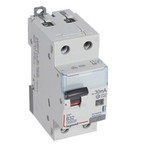 Legrand FI/LS-Schalter DX3, 1-polig mit mitschaltendem Neutralleiter, Typ A, für Wechsel- und pulsierende Gleichfehlerströme nach EN 61009-1, VDE 0664-20, unverzögert, Bemessungsstrom In 32 A, Bemessungsfehlerstrom Idn 30 mA.B-Charakteristik, Bemessungsspannung Un 230 VAC , Bemessungsfrequenz 50 Hz, Bemessungsschaltvermögen Icn 6 kA, Stoßstromfest bis 250 A, Energiebegrenzungsklasse 3, Auslöseanzeige: gelb=Fehlerstrom-oder Prüftastenauslösung, farblos= Kurzschluss-oder Handauslösung. Befestigung auf Hutprofilschiene EN 60715 durch rastende Schnellbefestigungen, klare Information vorne auf jedem Gerät, eindeutige Schaltstellungsanzeige rot/grün am Schalthebel (verriegelbar), mit Beschriftungsfenster, mit Untersteckschutz zum sicheren Einführen des Leiters in Fahrstuhlklemme, Anbau von Hilfsgeräten möglich.