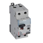 Legrand FI/LS-Schalter DX3, 1-polig mit mitschaltendem Neutralleiter, Typ A, für Wechsel- und pulsierende Gleichfehlerströme nach EN 61009-1, VDE 0664-20, unverzögert, Bemessungsstrom In 20 A, Bemessungsfehlerstrom Idn 30 mA.C-Charakteristik, Bemessungsspannung Un 230 VAC , Bemessungsfrequenz 50 Hz, Bemessungsschaltvermögen Icn 6 kA, Stoßstromfest bis 250 A, Energiebegrenzungsklasse 3, Auslöseanzeige: gelb=Fehlerstrom-oder Prüftastenauslösung, farblos= Kurzschluss-oder Handauslösung. Befestigung auf Hutprofilschiene EN 60715 durch rastende Schnellbefestigungen, klare Information vorne auf jedem Gerät, eindeutige Schaltstellungsanzeige rot/grün am Schalthebel (verriegelbar), mit Beschriftungsfenster, mit Untersteckschutz zum sicheren Einführen des Leiters in Fahrstuhlklemme, Anbau von Hilfsgeräten möglich.