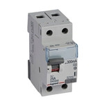 Legrand Fehlerstromschutzschalter TX3, Typ A, für Wechsel- und pulsierende Gleichfehlerströme nach VDE 0664-10, EN 61008-1, unverzögert, 2-polig, Bemessungsstrom In 25 A, Bemessungsfehlerstrom Idn 300 mA, Bemessungsspannung Un 230 VAC, Bemessungsfrequenz 50 Hz, Stoßstromfest bis 250 A, Bemessungskurzschlussstrom 10 kA bei geeigneter Vorsicherung, Befestigung auf Hutprofilschiene EN 60715 durch rastende Schnellbefestigungen, klare Information vorne auf jedem Gerät, eindeutige Schaltstellungsanzeige rot/grün am Schalthebel, mit Beschriftungsfenster, mit Untersteckschutz zum sicheren Einführen des Leiters in Fahrstuhlklemme, Anbau von Hilfsgeräten möglich.