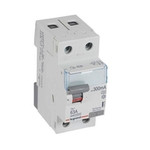 Legrand Fehlerstromschutzschalter TX3, Typ A, für Wechsel- und pulsierende Gleichfehlerströme nach VDE 0664-10, EN 61008-1, unverzögert, 2-polig, Bemessungsstrom In 63 A, Bemessungsfehlerstrom Idn 300 mA, Bemessungsspannung Un 230 VAC, Bemessungsfrequenz 50 Hz, Stoßstromfest bis 250 A, Bemessungskurzschlussstrom 10 kA bei geeigneter Vorsicherung, Befestigung auf Hutprofilschiene EN 60715 durch rastende Schnellbefestigungen, klare Information vorne auf jedem Gerät, eindeutige Schaltstellungsanzeige rot/grün am Schalthebel, mit Beschriftungsfenster, mit Untersteckschutz zum sicheren Einführen des Leiters in Fahrstuhlklemme, Anbau von Hilfsgeräten möglich.