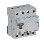 Legrand Fehlerstromschutzschalter TX3, Typ A, für Wechsel- und pulsierende Gleichfehlerströme nach VDE 0664-10, EN 61008-1, unverzögert, 4-polig, Bemessungsstrom In 80 A, Bemessungsfehlerstrom Idn 300 mA, Bemessungsspannung Un 400 VAC, Bemessungsfrequenz 50 Hz, Stoßstromfest bis 250 A, Bemessungskurzschlussstrom 10 kA bei geeigneter Vorsicherung, Befestigung auf Hutprofilschiene EN 60715 durch rastende Schnellbefestigungen, klare Information vorne auf jedem Gerät, eindeutige Schaltstellungsanzeige rot/grün am Schalthebel, mit Beschriftungsfenster, mit Untersteckschutz zum sicheren Einführen des Leiters in Fahrstuhlklemme, Anbau von Hilfsgeräten möglich.