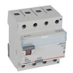 Legrand Fehlerstromschutzschalter TX3, Typ A-S, für Wechsel- und pulsierende Gleichfehlerströme nach VDE 0664-10, EN 61008-1, selektiv, verzögert mindestens 40 ms, 4-polig, Bemessungsstrom In 80 A, Bemessungsfehlerstrom Idn 300 mA, Bemessungsspannung Un 400 VAC, Bemessungsfrequenz 50 Hz, Stoßstromfest bis 3000 A, Bemessungskurzschlussstrom 10 kA bei geeigneter Vorsicherung, Befestigung auf Hutprofilschiene EN 60715 durch rastende Schnellbefestigungen, klare Information vorne auf jedem Gerät, eindeutige Schaltstellungsanzeige rot/grün am Schalthebel, mit Beschriftungsfenster, mit Untersteckschutz zum sicheren Einführen des Leiters in Fahrstuhlklemme, Anbau von Hilfsgeräten möglich.