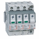 Legrand Überspannungsableiter Typ 2/Class II nach IEC/EN 61643-11, 3+1 Schaltung, für TT und TN-S Systeme, Nennspannung 230/400 VAC, Ableitstoßstrom Imax (8/20) 20 kA/Pol. Höchste Dauerspannung (Uc) 320 VAC. Zum Schutz vor Überspannungen nachgeordneter Verbraucher durch indirekte Blitzeinschläge oder Schalthandlungen. Mit Plug-in Schutzmodul und Statusanzeige: Grün(SPD betriebsbereit) Orange (Plug-in Schutzmodul austauschen).
