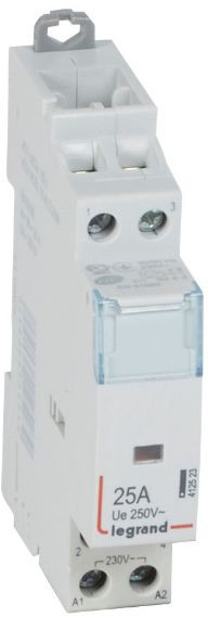 Legrand Installationsschütz CX3, Spulenspannung AC 230 V, 2-polig, Ausführung: 2 Schließer, Bemessungsbetriebsstrom Ie 25 A/ 250 VAC, ohne Handschalter. Nach EN 61095, Gebrauchskategorie AC-1/AC-7a und AC-3/AC-7b, Installationsschütze zum Schalten von Lasten wie z.B. Lampengruppen, Motoren und Heizungen, mit Beschriftungsfenster, mit Schaltzustandsanzeige, Befestigung auf Hutprofilschiene EN 60715 durch rastende Schnellbefestigung, Anbau von Hilfsschaltern möglich.