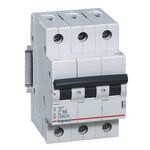 Legrand Leitungsschutzschalter RX3 nach EN 60898-1, VDE 0641-11, EN 60947-2, 3-polig, C-Charakteristik, Bemessungsstrom In 16 A, Bemessungsschaltvermögen Icn 6 kA nach EN 60898-1, Bemessungsspannung Un 400 VAC, Bemessungsfrequenz 50/60 Hz, Energiebegrenzungsklasse 3, Befestigung auf Hutprofilschiene EN 60715 durch eine rastende Schnellbefestigung, klare Information vorne auf jedem Gerät, Kennzeichnung Schaltstellungsanzeige On/Off, mit Beschriftungsfeld, Anbau von Hilfsgeräten nicht möglich. Leitungsschutzschalter mit C-Charakteristik sind für den Leitungsschutz bei Geräten mit hohen Einschaltströmen (z.B. Motoren und Transformatoren) vorgesehen.