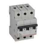 Legrand Leitungsschutzschalter RX3 nach EN 60898-1, VDE 0641-11, EN 60947-2, 3-polig, C-Charakteristik, Bemessungsstrom In 20 A, Bemessungsschaltvermögen Icn 6 kA nach EN 60898-1, Bemessungsspannung Un 400 VAC, Bemessungsfrequenz 50/60 Hz, Energiebegrenzungsklasse 3, Befestigung auf Hutprofilschiene EN 60715 durch eine rastende Schnellbefestigung, klare Information vorne auf jedem Gerät, Kennzeichnung Schaltstellungsanzeige On/Off, mit Beschriftungsfeld, Anbau von Hilfsgeräten nicht möglich. Leitungsschutzschalter mit C-Charakteristik sind für den Leitungsschutz bei Geräten mit hohen Einschaltströmen (z.B. Motoren und Transformatoren) vorgesehen.
