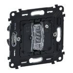 Valena In’Matic, Nachlaufschalter mit N-Leiter (SK) Schraubklemmen, Anschluss: L, N + 2 Schaltausgänge. Zum Einschalten der Beleuchtung und einesVentilators. Nach dem Abschalten des Lichts läuftder Ventilator für die eingestellte Zeit nach (25 Sek. bis 15 Min.) – Glüh- und 230 V HV-Halogenlampen: 250 W– NV-Halogenlampen mit elektronischem oderkonventionellem Transformator: 250 VA– Leuchtstofflampen mit Vorschaltgerät: 100 VA– LED- oder Kompaktleuchtstofflampen: 100 W– Ventilatorleistung: 250 VA. Enthält eine bereits integrierte LED zum Beleuchten des Schalters.