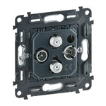 Valena In’Matic, Einzeldose, TV-R-SAT-SAT Anschlussdose, Antennendosen zur Sternverkabelung für HD taugliche TV-Übertragung. Zur Verwendung mit allen Betreibern geeignet (DVBT, Satellit, Kabel-TV). HDTV- und LTE-fähig. Geschirmtes Gehäuse zur Vermeidung von Funkstörungen (3 G- und 4 G-Signale). Entspricht EN 50083-2 und EN 50083-4. Anschlussdämpfung: < 1.5 dBSchnellanschlusstechnik mit ¼-Drehung. Frequenzband:TV: 5 – 68 und 120 - 862 MHz. R: 87,5 – 108 MHz. SAT: 950 – 2400 MHz.