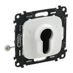 Valena Allure Schlüsselschalter für DIN-Halbzylinder 2-polig, 10 A – 230 V~ mit Schraubklemmen. Zur Verwendung mit DIN-Halbprofilzylinder (nicht im Lieferumfang enthalten). Benötigte Einbautiefe: 45 mm, nicht für Aufputzgehäuse geeignet. Farbe: Ultraweiß