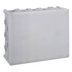 Legrand Abzweigdose Plexo. Rechteckig 310 x 240 x 124 mm (H x B x T), Schutzart IP 55 – IK 07, 10 Membran-Einführungen, Deckel mit 1/4-Drehung Schnellverschluss, Lichtgrau RAL 7035, selbstverlöschend 750°C, beschriftbarer Deckel.