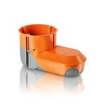 Hohlwand-Elektronikdose; orange; mit Durchstoßmembran; 70% Zeitersparnis bei der Montage; Ein-Lochmontage; Seitlicher Anschlussraum für alle gängigen Relais und Aktoren; Einhaltung des Biegeradius bei Netzwerkkabeln problemlos möglich; Material: PP, TPE, recycelbar
