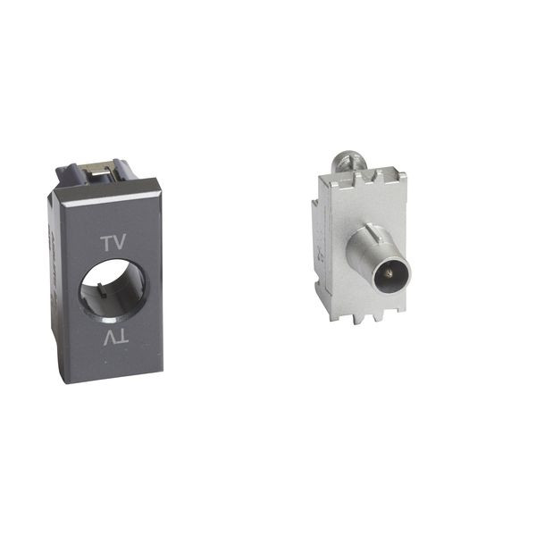 TV-Anschlussdose des Schalterprogramms AXOLUTE, als Durchgangsdose verwendbar, 1-modulige Ausführung, Farbe: Aluminium, anthrazit und white (3 Abdeckungen im Lieferumfang)