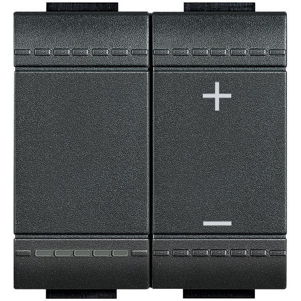 Tastdimmer Phasenanschnitt für Glüh- und HV-Halogenlampen sowie NV-Halogenlampen mit konventionellem (Eisenkern-)Transformator – 600VA – elektronische Sicherung – 2-modulig, Farbe: Anthrazit