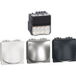 Stufenbeleuchtung für das Schalterprogramm LIVINGLIGHT mit 2,2 W LED, für dekorative Beleuchtung, ansteuerbar mittels Wechselschalter oder 3-Leiter-Bewegungsmelder, geliefert mit 3 Abdeckkappen (Weiß, Tech, Anthrazit), 2-modulig. Benötigte Einbautiefe: mind. 40 mm.