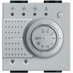 Raumthermostat für Fan-Coils mit Stellrad zum manuellen Veränder der Solltemperatur um ±3 °C, Frostschutz und Aus, Taste Lüftergeschwindigkeit, Messbereich 3–40 °C, Kontroll-LEDs für Betrieb, Lüftergeschwindigkeit und Heizen/Kühlen, Farbe: Tech