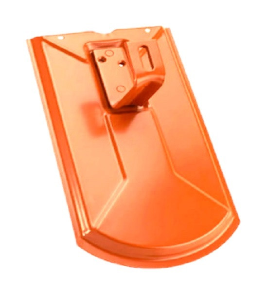 Aufdachmodulhalter Biber, auf Metalldachplatte genietet, ziegelrot, komplett mit Lattenschiene 400 mm, inklusive Bohrschrauben, zum Anschrauben an die Dachkonstruktion