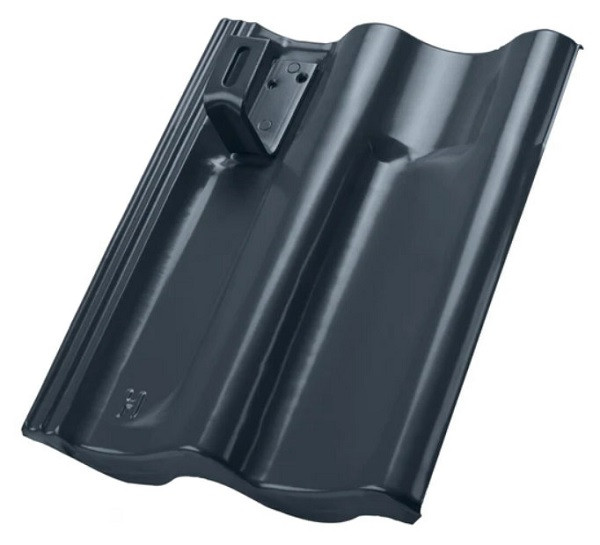 Aufdachmodulhalter auf Metalldachplatte genietet, System BRAAS Harzer Pfanne, anthrazit, komplett mit Lattenschiene 400 mm, inklusive Bohrschrauben, zum Anschrauben an die Dachkonstruktion