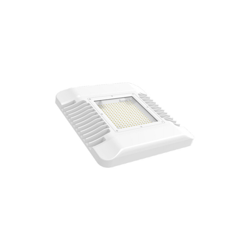 Tankstellenleuchte, Super-Slim Bauform, Gehäusefarbe: Weiß RAL 9016, Abdeckung: mattes Blendschutzglas, Leistung: 150W, 1-10V dimmbar, Lichtfarbe: 4000K Neutralweiß, Lichtstrom: 14640lm, CRI>80, Ausstrahlungswinek: 110°, Schutzart: IP65, Anschlussleistung: AC100-270V, 50Hz, Schutzklasse: II, Garantie: 5 Jahre, Anwendung: Tankstelle / Unterführung / Tunnel / Brücken
