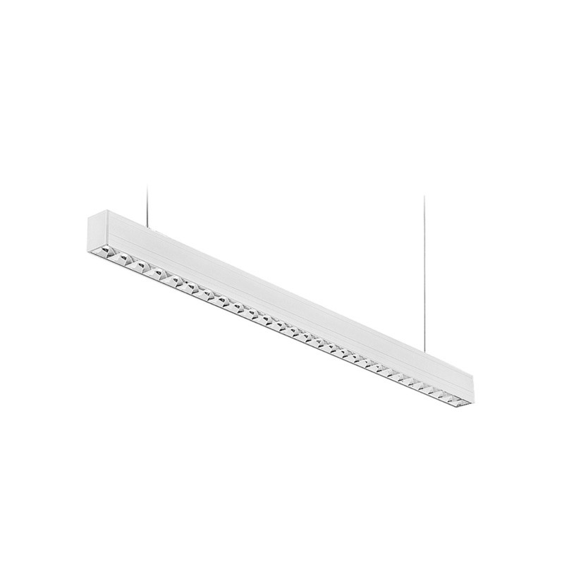 Büroleuchte, 36W, 1200mm, UGR<19, CRI>80, Lichtfarbe 4000K, Lichtstrom: 3600lm, anreihbar: Mechanische Verbindung, keine Durchverdrahtung, IP<40, inklusive Seilabhängung und Netzteil nicht dimmbar (1-10V oder DALI auf Anfrage), Gehäusefarbe: Weiß RAL 9016, Lebensdauer: >50.000 Std.