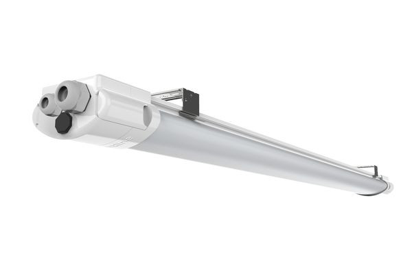 LED-Feuchtraumleuchte mit Durchgangsverdrahtung für den Innen- und Außenbereich. Einfache, schnelle Montage an Wand oder Decke. Befestigungsklammern mit Schraube zur Diebstahlsicherung liegen bei. Befestigung möglich über die komplette Leuchtenlänge. Vorhandene Bohrlöcher können zur Montage verwendet werden. Die Leistung des integrierten Vorschaltgerätes ist mit einem DIP-Schalter reduzierbar (100%, 75%, 50%). Die glatte Oberfläche hat eine geringe Verschmutzungsneigung und ist leicht zu reinigen. Die Leuchte ist staubdicht, geschützt gegen Strahlwasser, schlagfest bis 5J und geeignet für den geschützten Außenbereich. Druckausgleichselement zum Schutz vor Kondenswasserbildung bei Temperatur- und Druckschwankungen. Lange Lebensdauer, hoher Lichtstrom, gute Farbwiedergabe, breit strahlend, flickerfrei. Besonders gleichmäßige Lichtverteilung durch die prismatische PC-Abdeckung. Geringer Wartungsaufwand. Energieeinsparung bis zu 60% gegenüber einer herkömmlichen Feuchtraumleuchte. Bruchsicher, geeignet für den Einsatz in IFS-zertifizierten Bereichen.