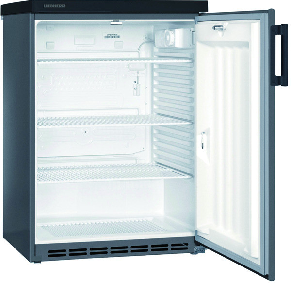 mechanische Steuerung, digitale Temperaturanzeige außen, statische Kühlung, Temperaturbereich +2 bis +10°C, automatische Abtauung, 4 Ablageflächen davon 3 kunststoffbeschichtete Roste verstellbar, Belastbarkeit je Ablagefläche 50 kg, Stahltür mit Schloss, Türanschlag rechts, wechselbar, auch für den freistehenden Einsatz geeignet