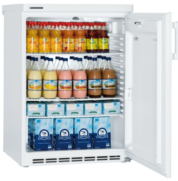 mechanische Steuerung, digitale Temperaturanzeige außen, statische Kühlung, Temperaturbereich +2 bis +10°C, automatische Abtauung, 4 Ablageflächen davon 3 kunststoffbeschichtete Roste verstellbar, Belastbarkeit je Ablagefläche 50 kg, Stahltür mit Schloss, Türanschlag rechts, wechselbar, auch für den freistehenden Einsatz geeignet