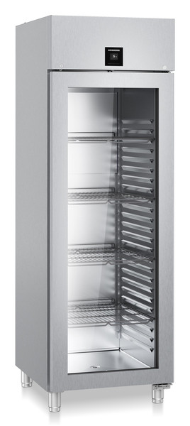Kühlgerät GN 2/1 mit Umluftkühlung. Wo Lebensmittel gelagert werden, hat Hygiene oberste Priorität. Daher ist der tiefgezogene Gastronorm-2/1-Innenbehälter aus hygienefreundlichem Edelstahl und verzichtet auf umständlich zu reinigende Funktionsteile. Auch die spaltenlosen Edelstahl-Seitenwände des Außengehäuses mit Isolationsschicht sind besonders leicht zu säubern. Kühl- und Gefriergeräte GN 2/1 aus Edelstahl sind innen und außen strahlwasserbeständig nach IPX5.