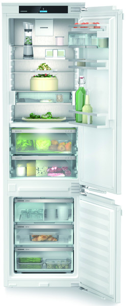 Gefrierteil: VarioTemp (das Gefrierteil kann mit einer Temperatur stufenlos zwischen -2 °C und +14 °C umgestellt werden), SuperFrost, NoFrost Abtauautomatik, LED-Beleuchtung, FrostSafe-System mit 3 rundum geschlossenen transparenten Schubfächern, VarioSpace durch herausnehmbare Schubfächer und Glaszwischenböden, IceMaker mit Festwasseranschluss 3/4", Eiswürfelproduktion 1,2 kg/24h, Eiswürfelvorrat 5 kg,