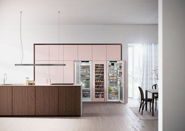 Side-by-Side Set (auch als Einzelgeräte nutzbar), integrierbar, Rauminhalt Kühlen: 296 l, davon Frische-Zone: 97,9 l, BioFresh, HydroBreeze (der kalte Nebel, verbunden mit der Temperatur im Safe um 0°C, gibt Lebensmitteln den Extra-Kick für längere Haltbarkeit ), Super-Kühlen, Umluftkühlung, Flaschenablage (liegend), Frische-Behälter: 3, Glasablageflächen: 6, Holz-Ablageflächen: 9, VarioSafe (Kleinere Lebensmittel, Packungen, Tuben und Gläser sind in diesem Schubfach optimal aufbewahrt), LED-Beleuchtung, Rauminhalt Gefrieren: 213 l, Schubladen: 8, VarioSpace (einzelne Gefrierschubfächer herausnehmbar, für extra hohen Stauraum), NoFrost, Super-Gefrieren, LED-Beleuchtung, Eisbereiter für Eiswürfel, Temperier-Schrank, Temperaturzonen: 2, regelbare Kältekreisläufe: 2, Display, farbig, 2,4 Zoll, 6,1 cm, Touch-Funktion, digitale Temperaturanzeige, Wasserspender, Kühl-/Gefrierteil getrennt regelbar, SmartDevice integriert (Steuerung über Internetverbindung möglich), per App unterstützter Datentransfer, per App steuerbar, Energieeffizienzklasse D
