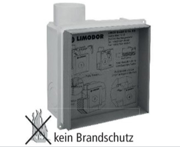 für Lüfterserie compact mit seitlichem Ausblasstutzen NW 80 mm, mit perforierten Ausbrechöffnungen, Länge: 242 mm, Breite: 242 mm, Tiefe: 100 mm, inkl. Rückschlagklappe, Putzdeckel und 6-poliger Netzklemme